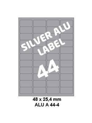 Dunne Silver Alu labels (Lasergeschikt) meestal gebruikt ten behoeve van de elektronica, de machinebouw en de metaalindustrie.